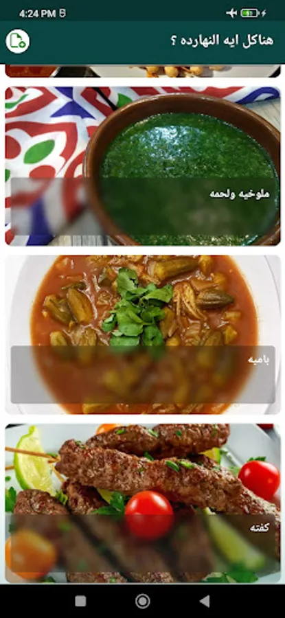 تطبيق الاكلات المصرية هو تطبيق لنظام التشغيل أندرويد يحتوي على مجموعة من الاكلات المصرية المختلفة. يمكن للمستخدمين اختيار الاكلات التي يرغبون في تحضيرها باستخدام قائمة الاكلات الموجودة في التطبيق، أو يمكنهم الاختيار العشوائي لمساعدتهم على تحديد وجبة غدائية بسهولة.