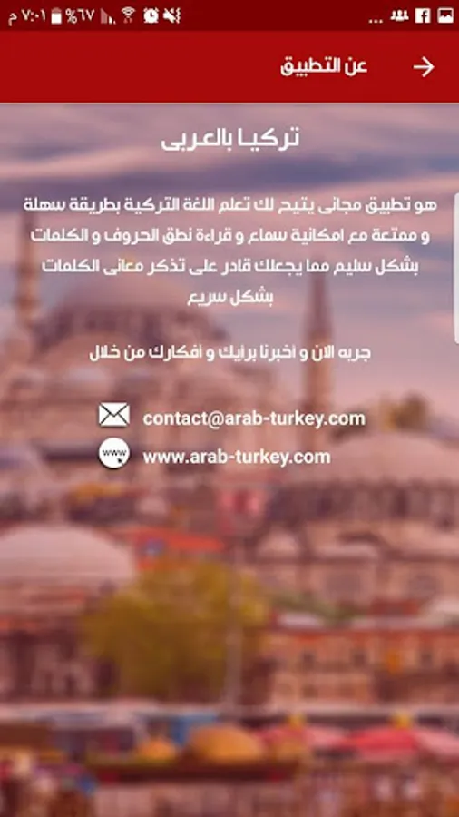 Application of this learning Turkish language site sponsored by Turkey in Arabic, a specialized application for beginners in the Turkish language, where new content is added new words and phrases every day into the free application 100%
