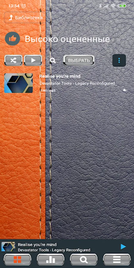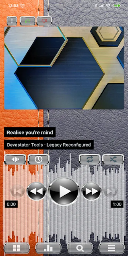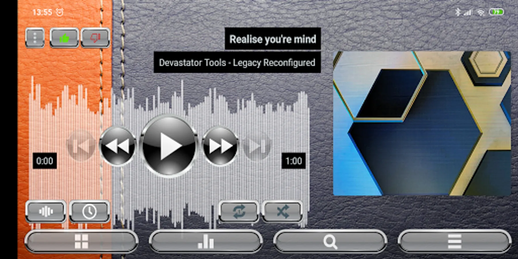 Dark theme with a leather background with a stitching and buttons with a chrome ring for Poweramp V3. The skin is perfect for the car head unit on Android. Buttons with a chrome ring will look beautiful and elegant. Also if you like chrome and leather then this skin will look perfect on your mobile device.