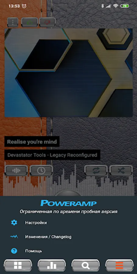 Important information: the skin only works with Poweramp V3. To apply this skin, you must have installed the application "Poweramp Music Player v3".