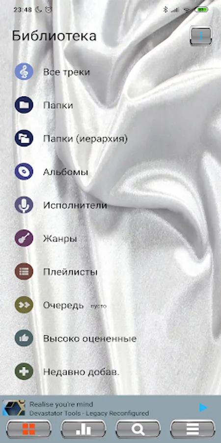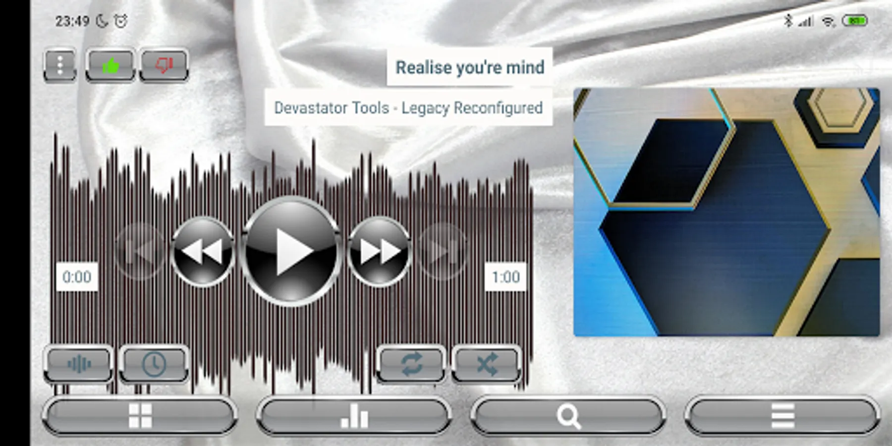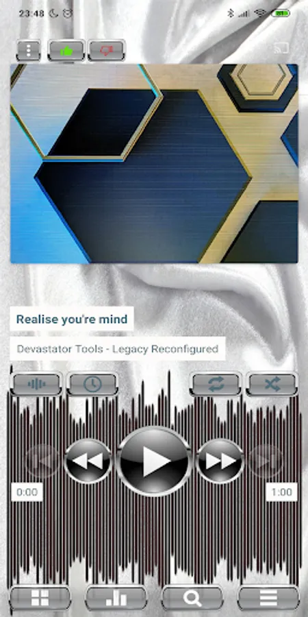 A light theme with a white velvet backdrop and chromed ring buttons for Poweramp V3. The skin is perfect for the car head unit on Android. Buttons with a chrome ring will look beautiful and elegant. Also if you like chrome and velvet then this skin will look perfect on your mobile device.