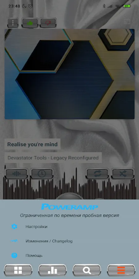 Important information: the skin only works with Poweramp V3. To apply this skin, you must have installed the application "Poweramp Music Player v3".