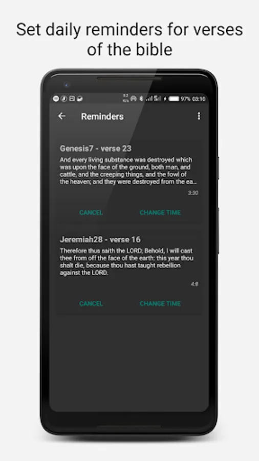 Do you have a verse of the bible that is very close to your heart? With the daily verse reminder functionality provided by the app, you can pick any verse of the Bible and have
