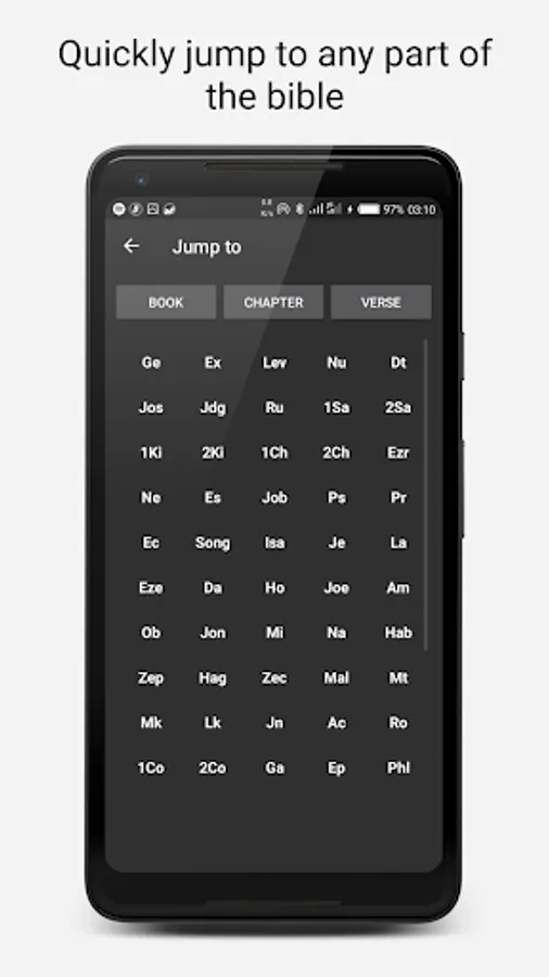 Easily navigate to any book, chapter, or verse you want. All you have to do is select from