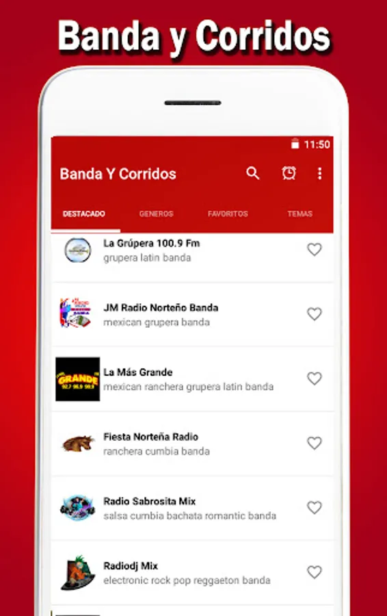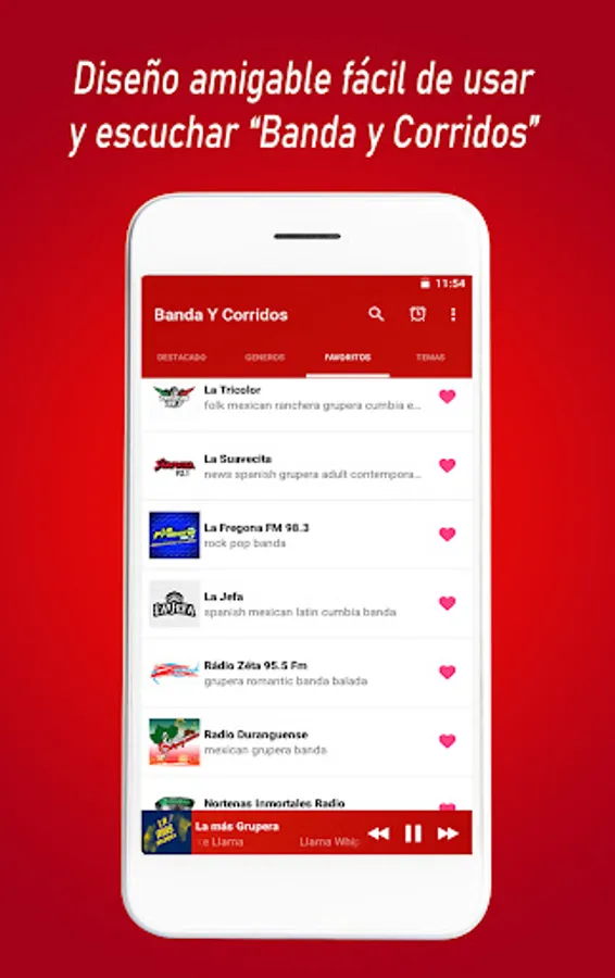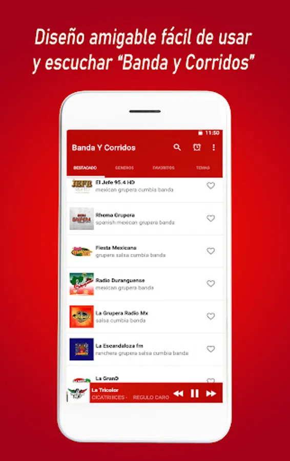 Nuestra aplicación le permite escuchar Banda Mexicana. Elige lo que quieres escuchar.