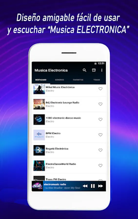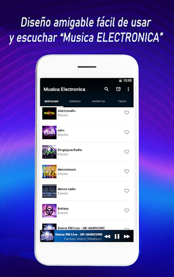 Nuestra aplicación le permite escuchar Musica Electronica Gratis. Elige lo que quieres escuchar.