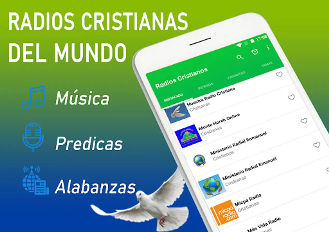 Our application allows you to listen live to all the Christian Evangelical Radios of the World. Choose what you want to hear: preaching, praise, music and much more.