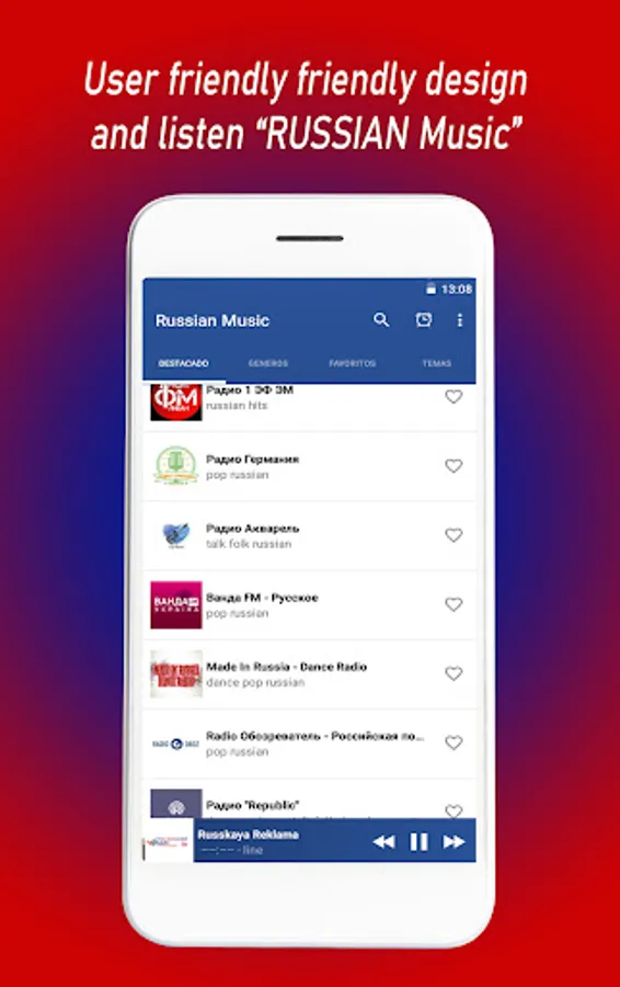 With Russian Music you can access all Russian Music Radio stations quickly and easily. You can listen to your favorite Russian music app online. Quick, simple and efficient