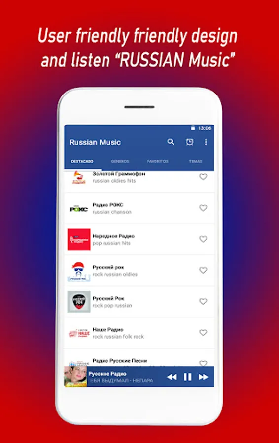 Russian Music allows you to connect to more than 100 Russian Music Radio Stations. Now you can listen to Russian music app wherever you are, with just the move of a finger.