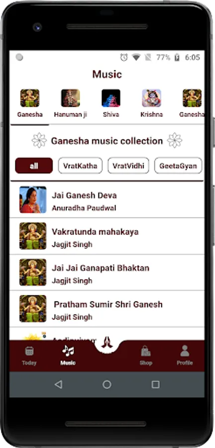 3. Uninterruptedly listen to famous Songs, Bhajans and Aartis of various Gods and Goddesses in high quality ๐ง