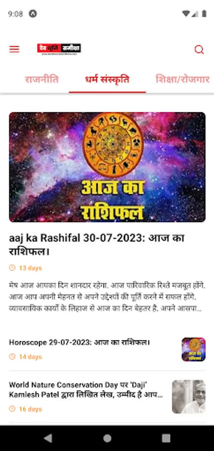 This application serves as a comprehensive source of information, offering a diverse array of news encompassing the realms of local, national, and international affairs. Delivered in the eloquent Hindi language, it caters to a wide audience seeking updates and insights in their native tongue.