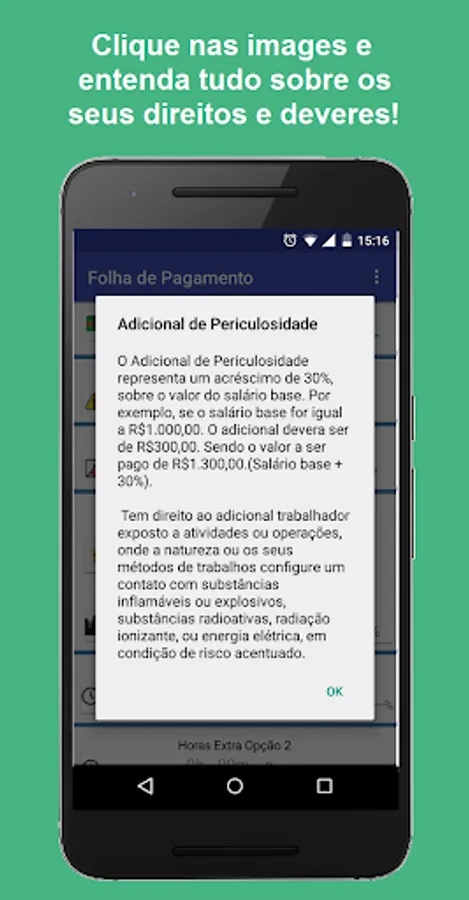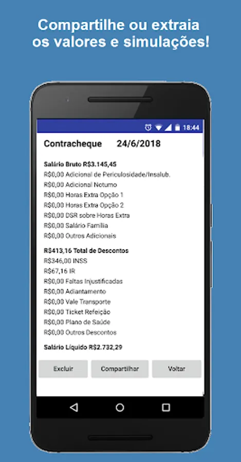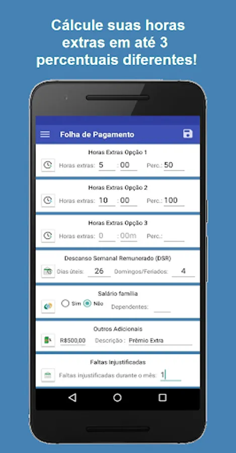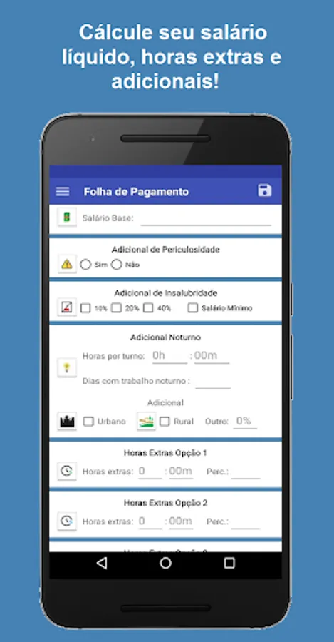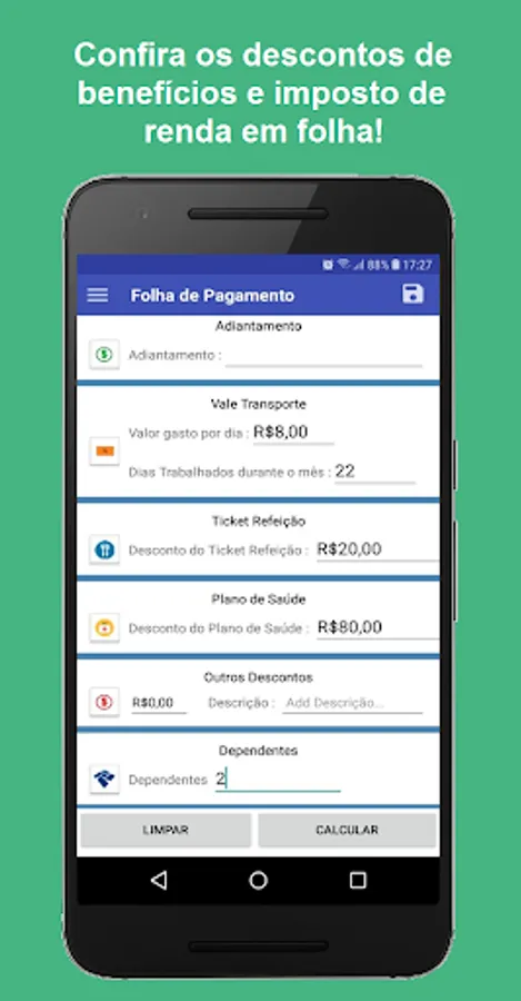 A practical solution with light and beautiful desing, but that goes beyond appearance. Each icon is a button, which provides information about each benefit or discount. Simple and intuitive, Payroll offers a pleasant and very easy experience, to calculate your net salary and to be able to plan your monthly expenses. In addition to taking your doubts and teaching you how to use each feature, you will also be able to store the results to consult whenever needed.