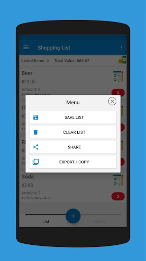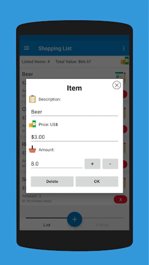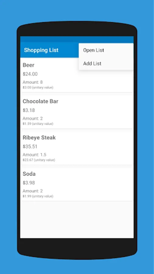 Simple and practical, create your lists and let the app calculate the final value of your purchases.