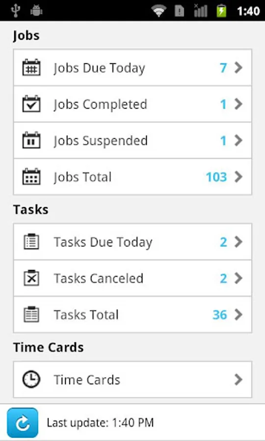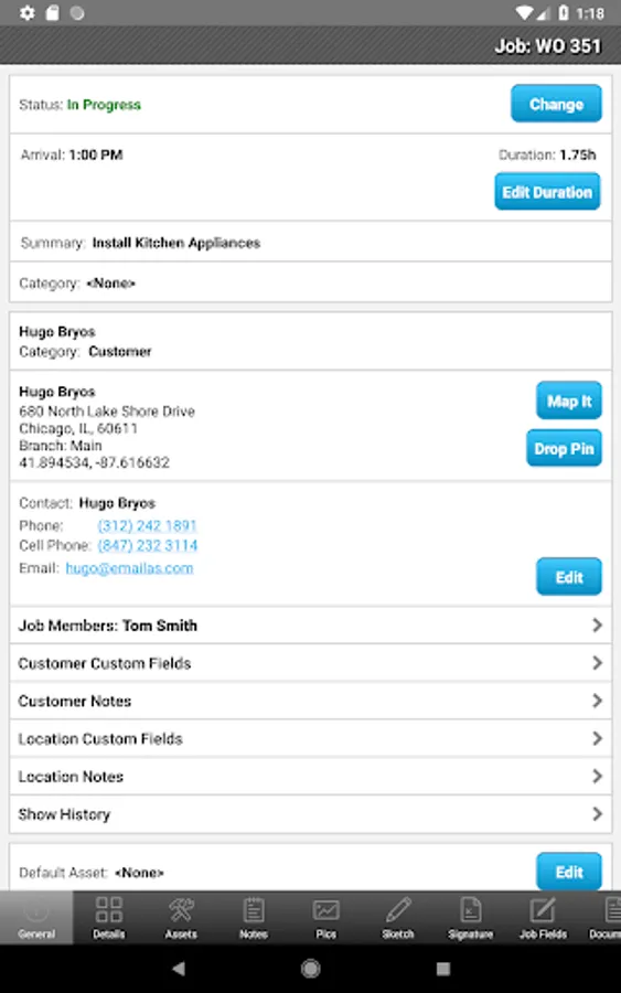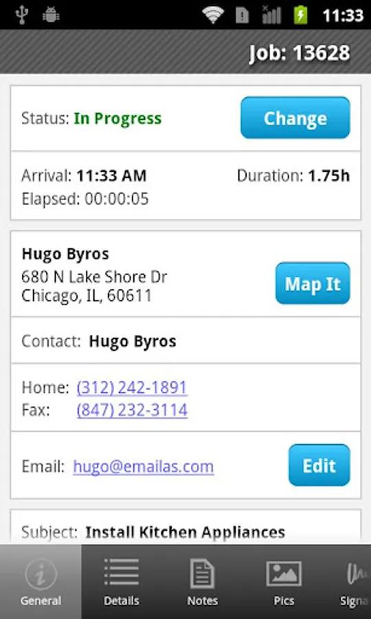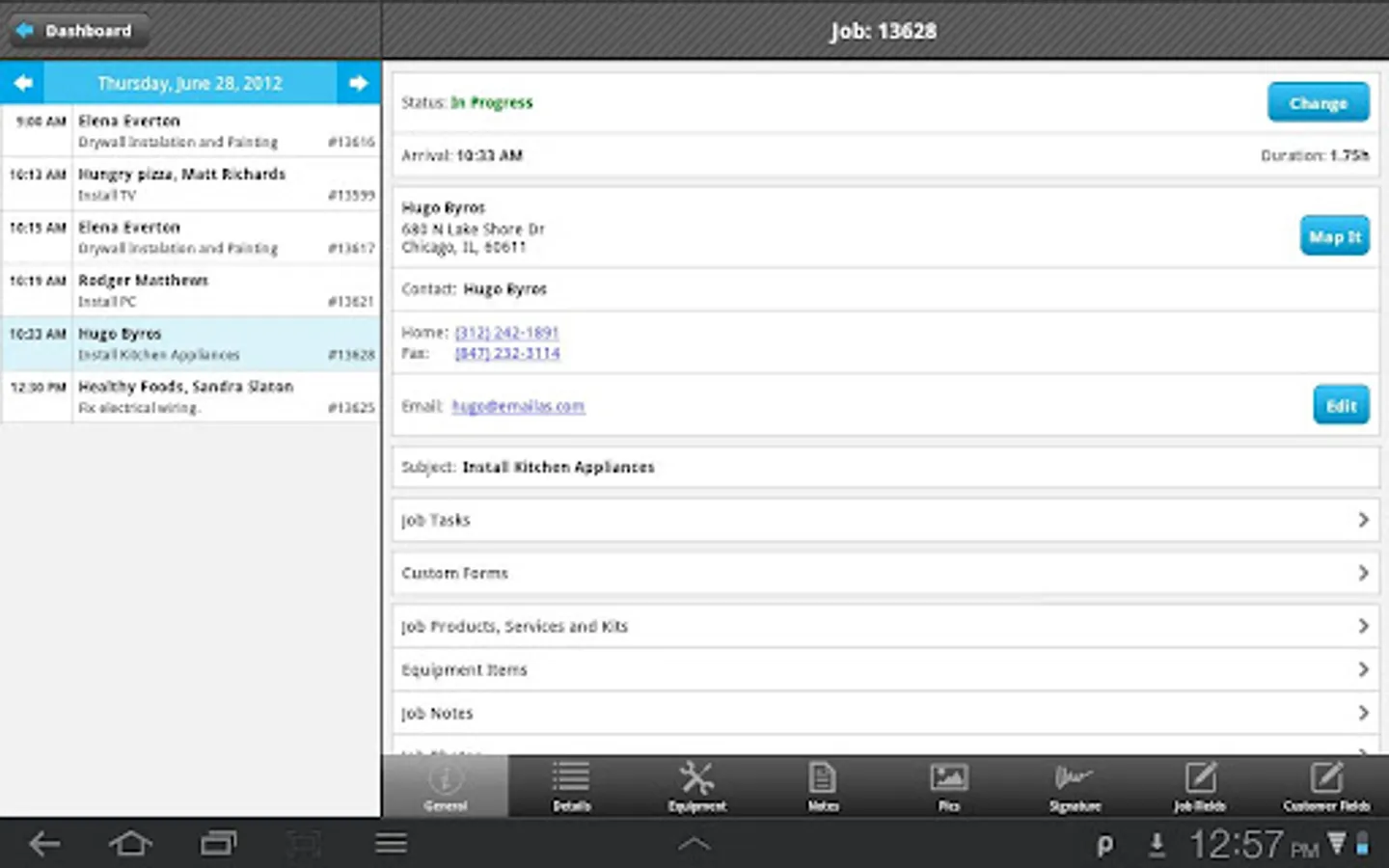 You can instantly distribute job and customer information to field workers, automatically inform your field workers of new assignments and changes to their schedules, and receive job updates made from the field. You can also access photos and signed documents, as well as capture payment information from the field.