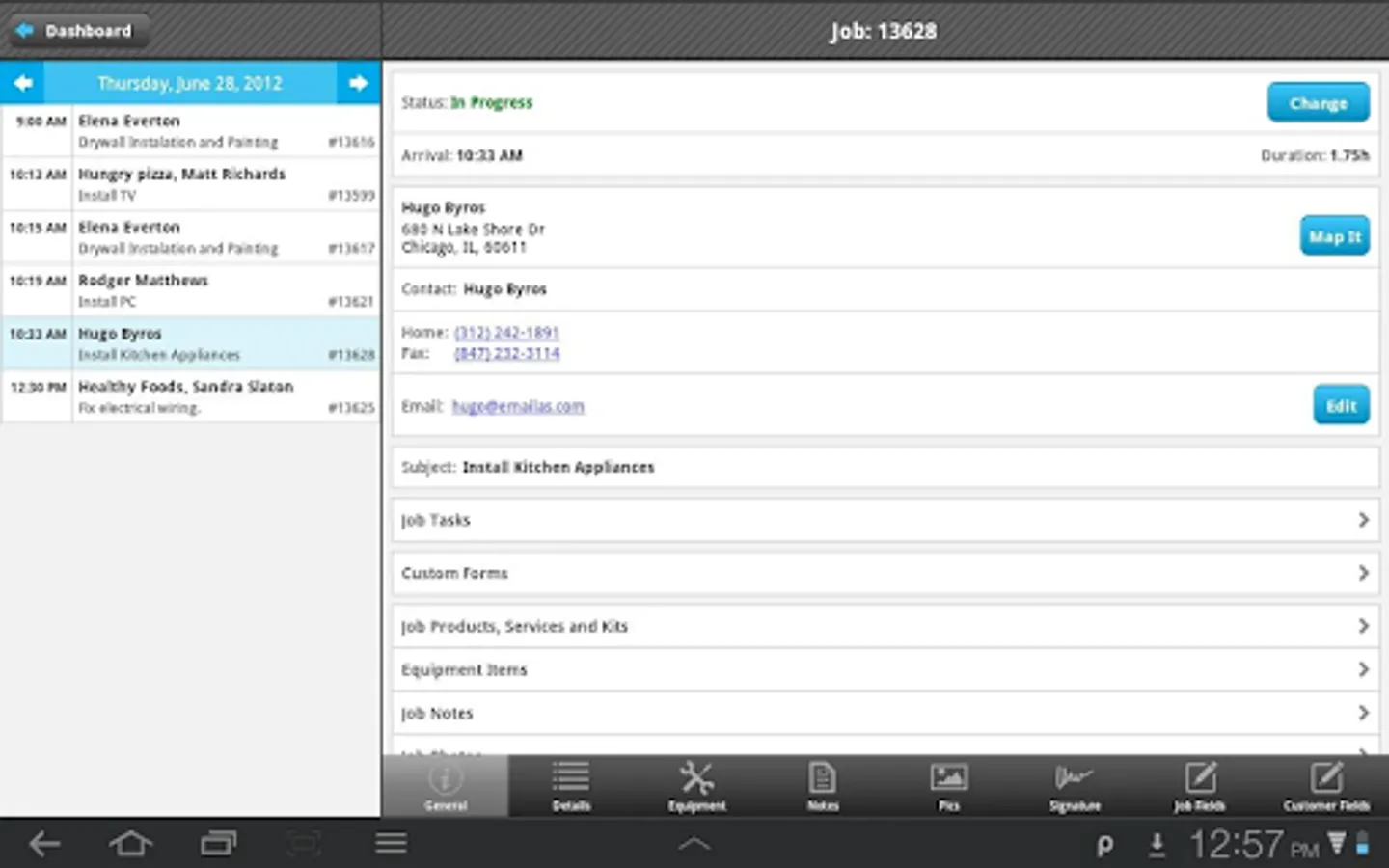 With the ServiceBridge mobile app, you can instantly distribute job and customer information to field workers, automatically inform your field workers of new assignments and changes to their schedules, and receive job updates made from the field. You can also access photos and signed documents, as well as capture payment information from the field.