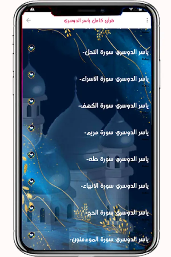 The Holy Quran program in yaser dossari voice offers you the opportunity to hear the Holy Quran suras through your mobile phone with ease and ease and contains all the suras of the Holy Quran. The program can be downloaded with the voice of yaser dosari with ease, in order to enjoy the recitation of the Holy Quran in the voice of the Sheikh.