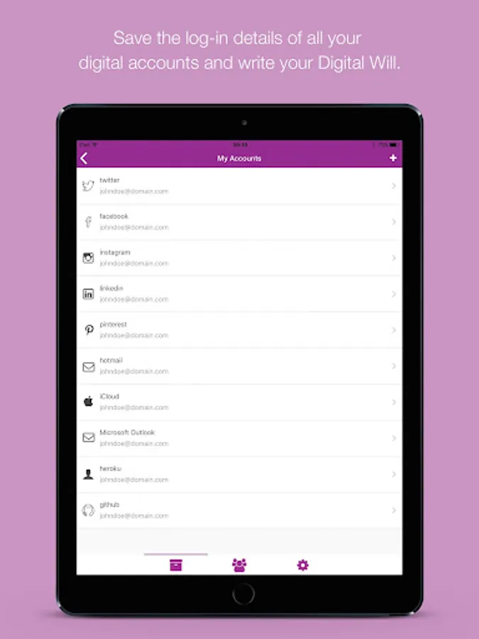 PinPal is your digital safe, where you can store the log-in details of your digital accounts and devices and store your important digital documents such as your Digital Will. PinPal allows you to nominate someone who can act as your Digital Executor and take control of your online accounts at some point in the future, when you are no longer around to do so.