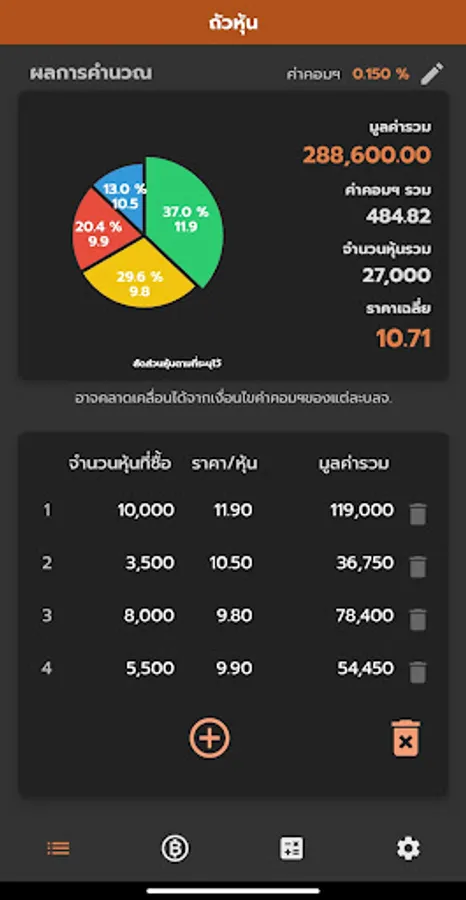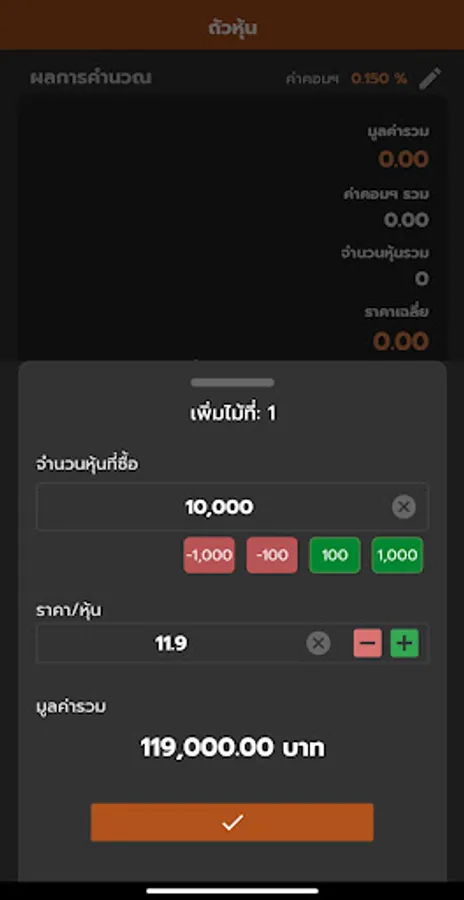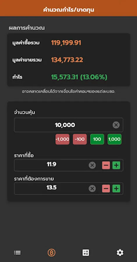 Easy to use and convenient with buttons to increase and decrease the number of shares, increase the trading price that increases and decreases according to the steps like the stock market. No need to delete and type again and again. will calculate the weighted shares or calculating profit and loss is easier than ever