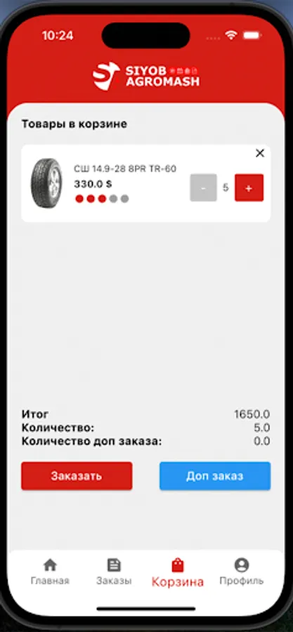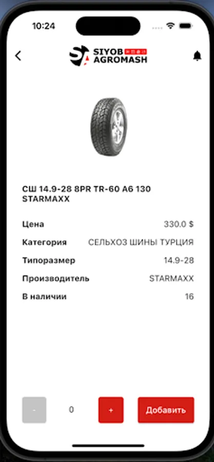SiyobAgromash is a branded application of SIYOB AGROMASH companies for purchasing tires and other car parts online.