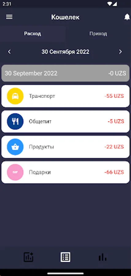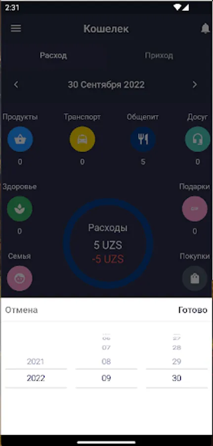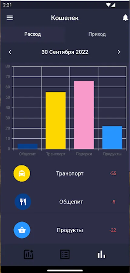 Wallet - это приложение для учета вашего бюджета. Отслеживайте свои расходы используя графики и подбора по категориям в Wallet.