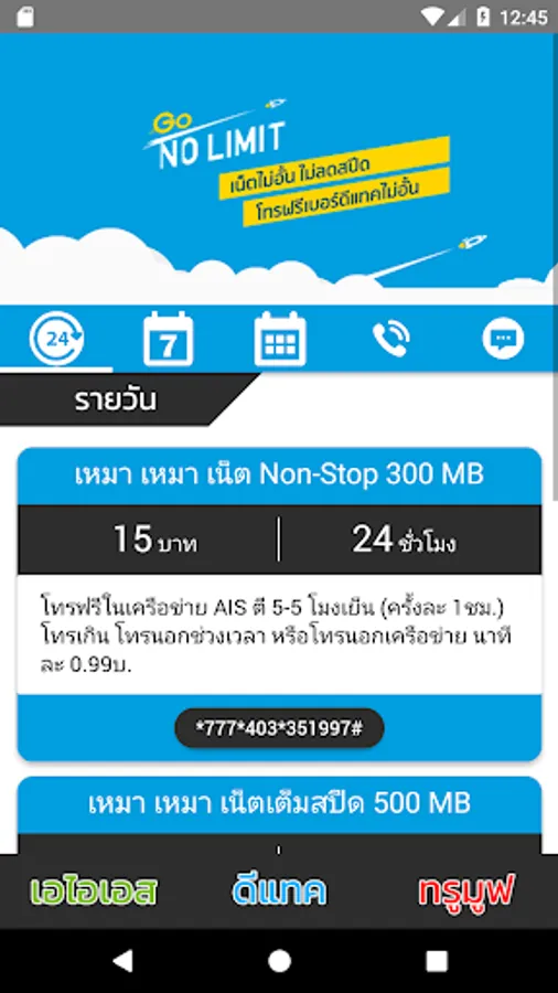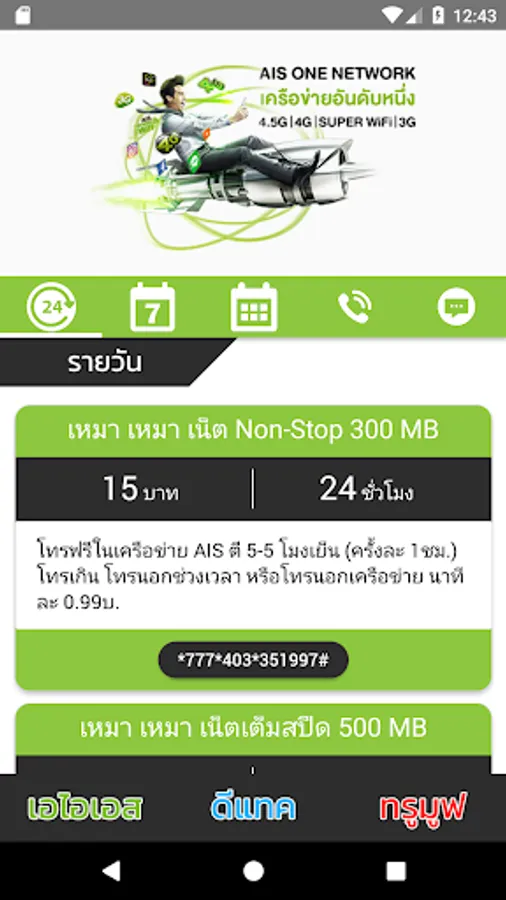 Using the application, just select the camp that we want to use.> Select the number of days you want to use.> Select the desired package> Press the number button. The system will automatically make a call. Without having to remember the number to dial