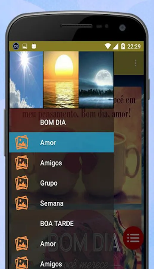 free application with Good Morning messages, Good Afternoon, Good Evening and Week.
