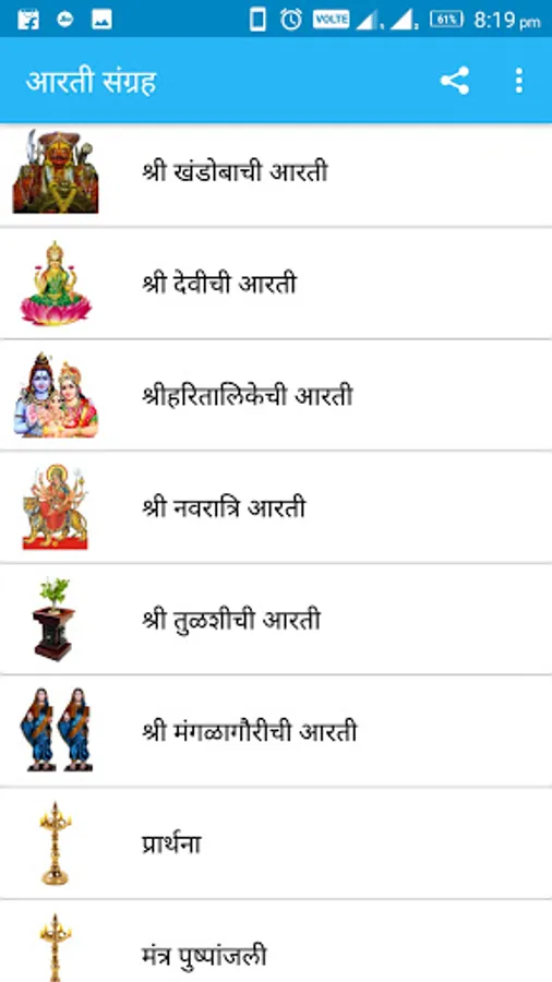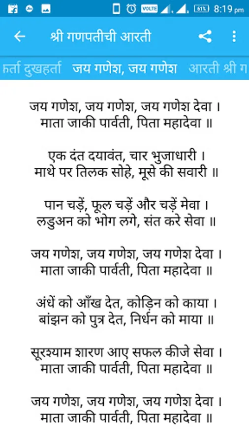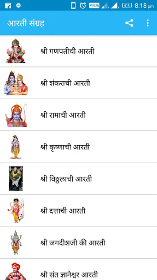 Aarati Sangrah (आरती संग्रह) provides collection of Aarati of Hindu God/Goddess at one place.