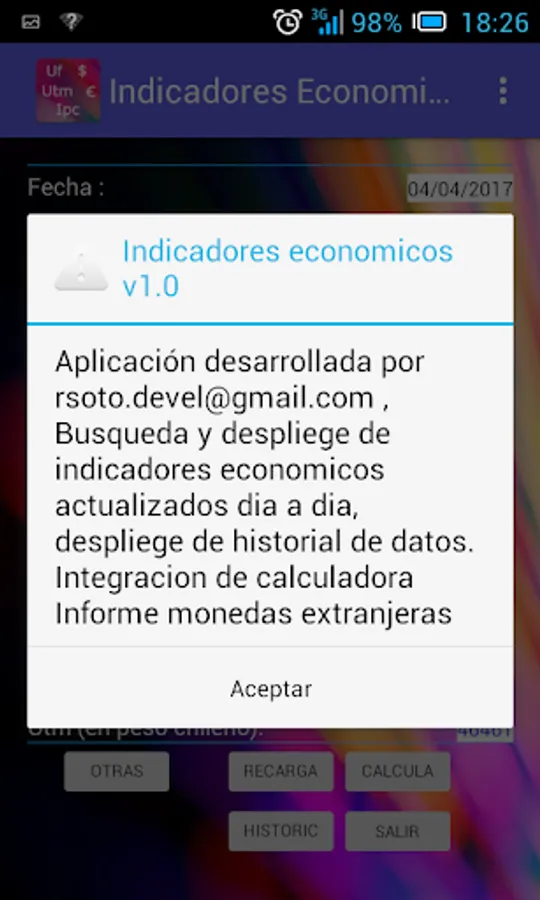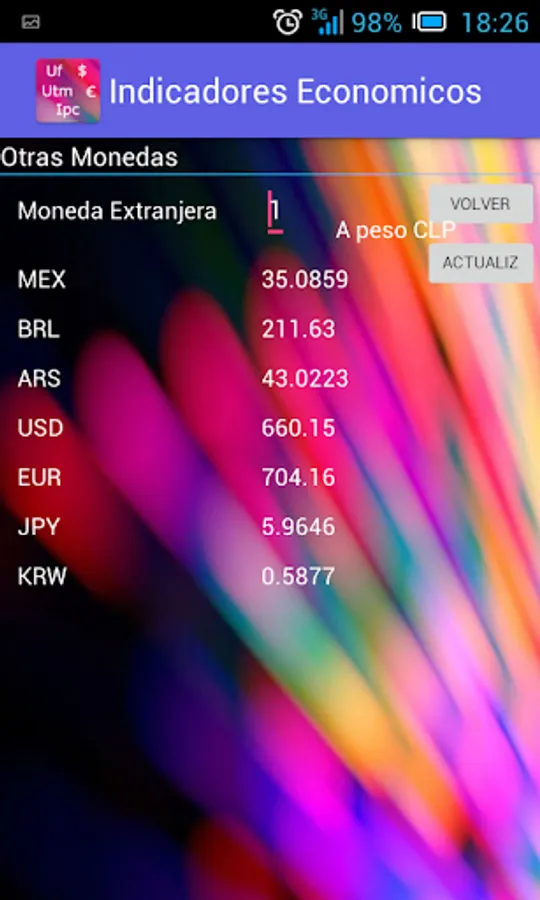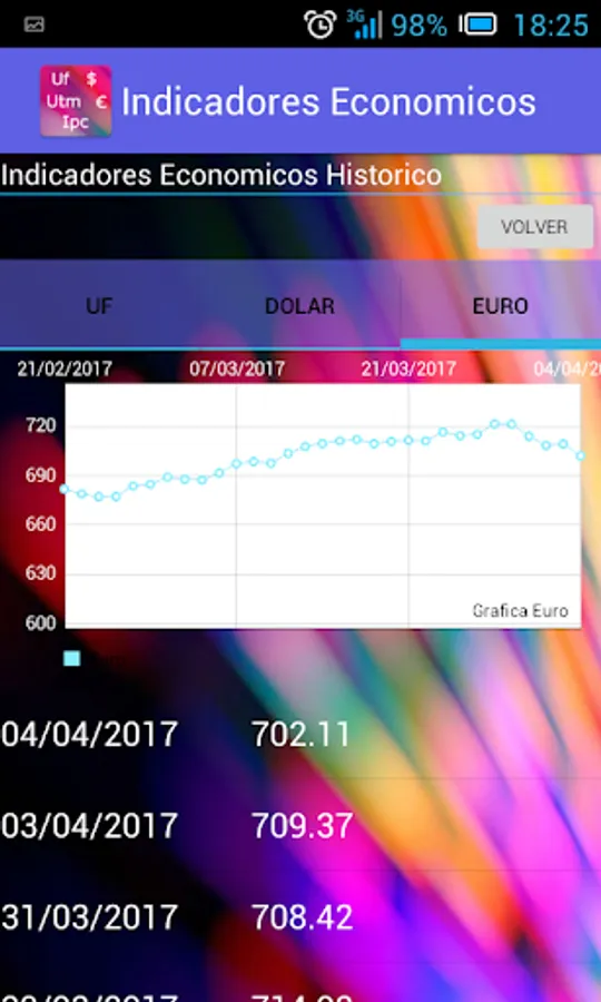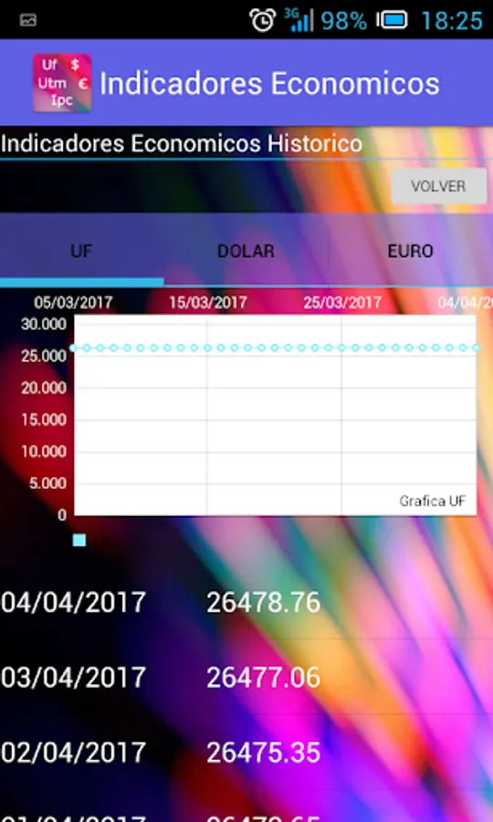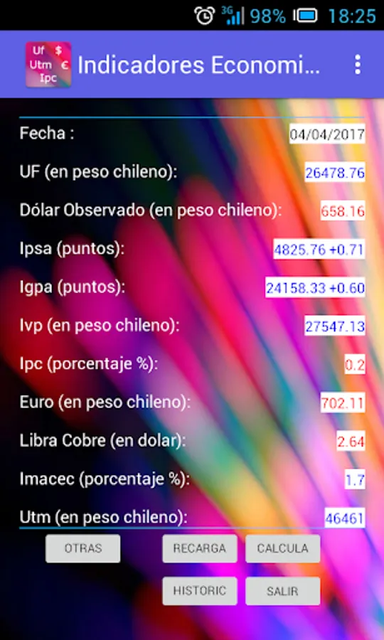 deploys core values and indices of interest, such as Chile UF, UTM, Dollar, Euro, etc.