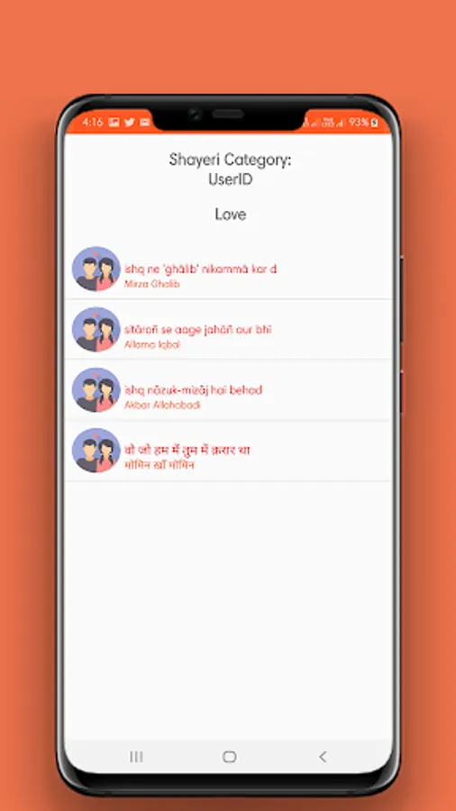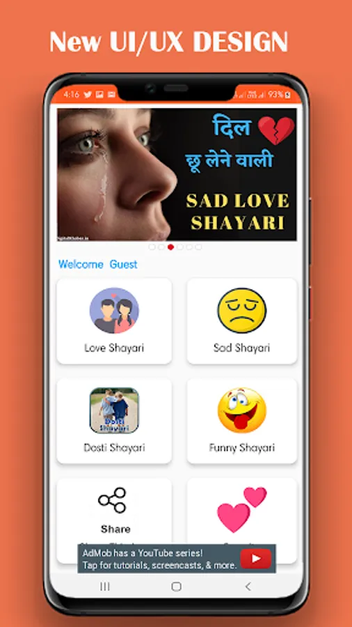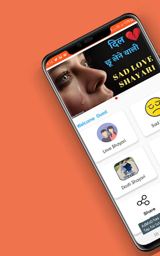 This app has different categories like Love Shayari, Sad Shayari, Funny Shayari, Dosti Shayari. You can choose any category.