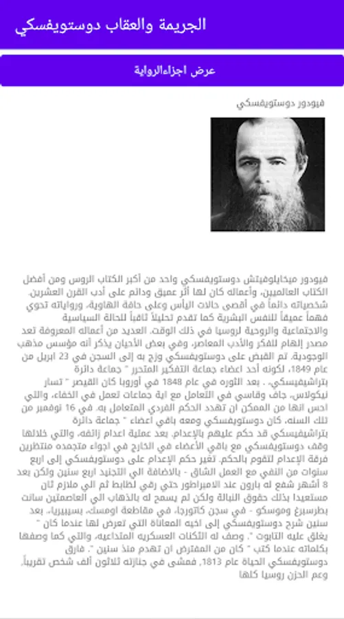 In the novel, as it became clear from its title, it is the subject of crime and the issue of good and evil that is related to the crime, as it depicts what is going on in the criminal's soul as he commits his crime, and depicts his feelings and reactions, as well as the first and basis motive for the crime, where he portrays a person rebellious against morals. He tries to get out of her with all his strength, as a strange force pushes him to adventure even to the extreme. The protagonist Raskolinov discovers that the superior human being, so he proceeded to commit his crime to prove his superiority, but the punishment that this man received was severe as he was accused of madness and separated from the rest of mankind and rose between him And among those who knew a terrible barrier that made him think of suicide.