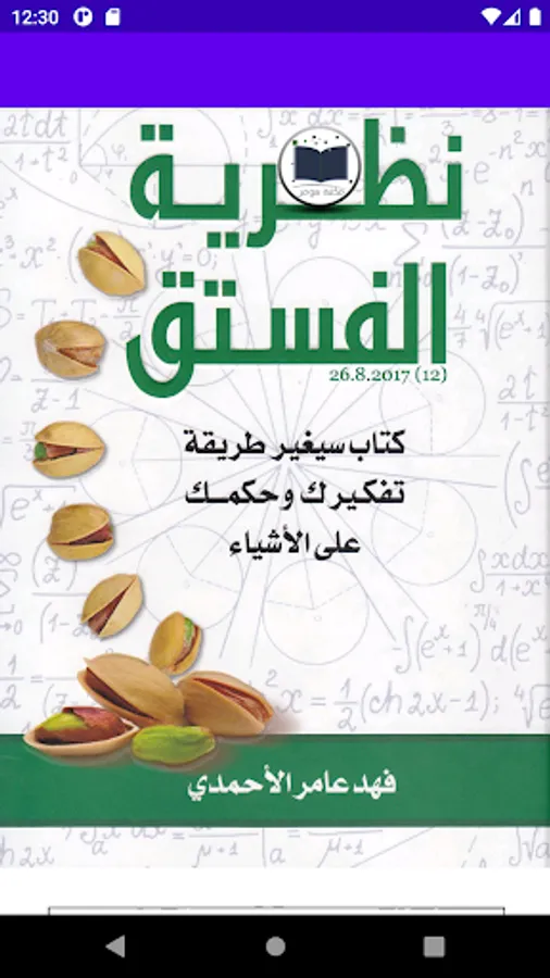 The pistachio theory book is one of the books on human development and self-development. The author of the book is Fahd Amer Al-Ahmadi. The book consists of two parts, the first part contains 338 pages, which includes a large number of articles that talk about self-development, improving ways of thinking, and raising awareness among people.