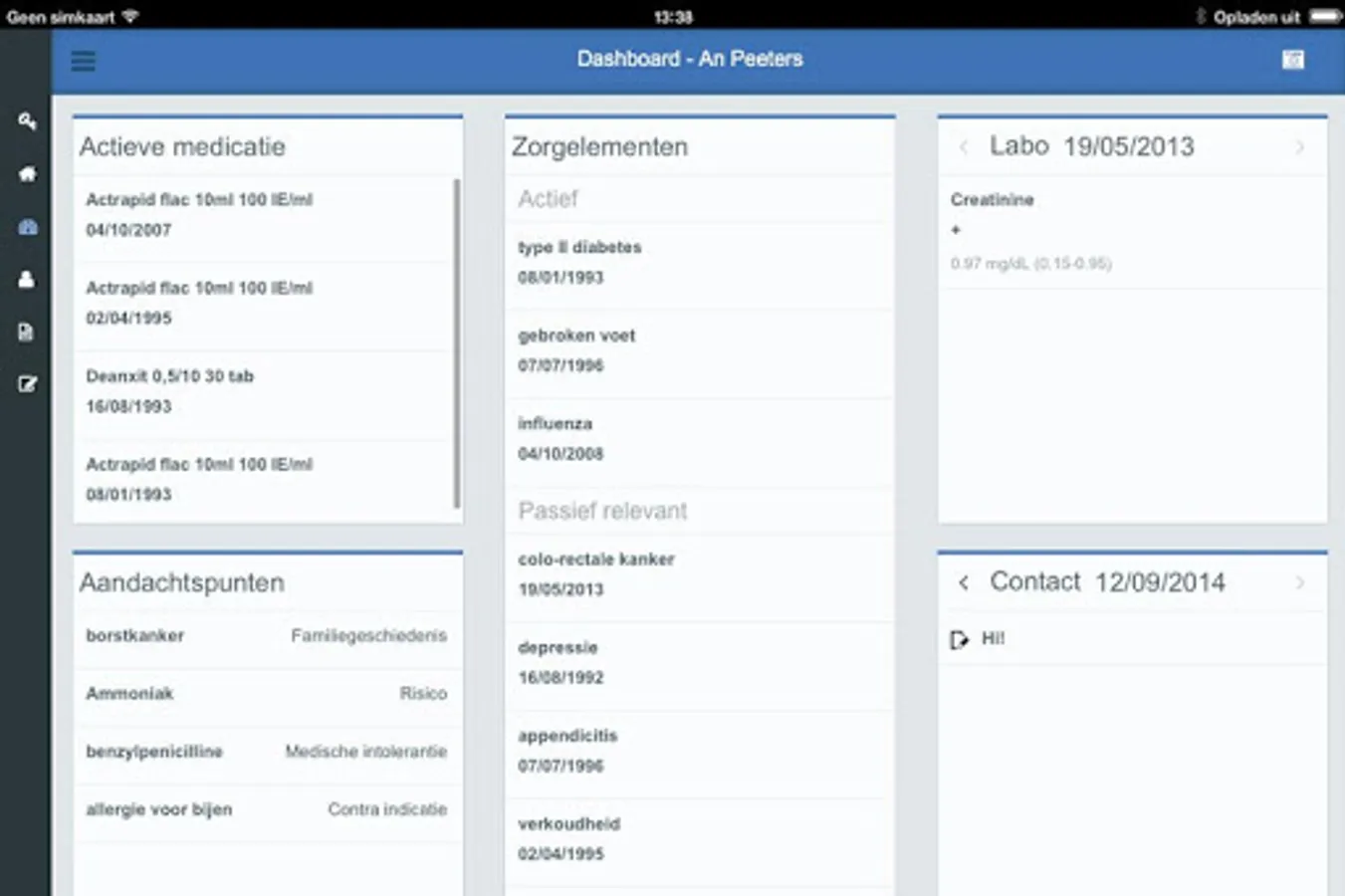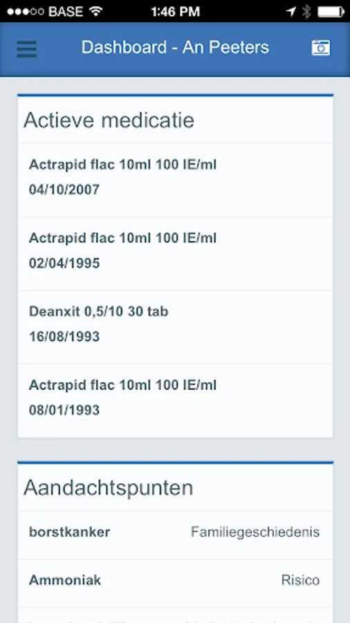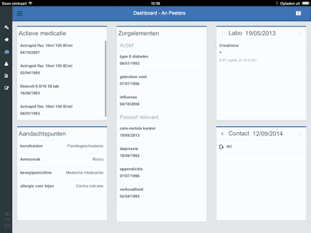 • Open patient files and visualize the most important elements (dashboard, documents, lab results, medication…)