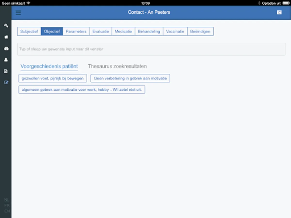 • Make a picture with your smartphone’s or tablet’s camera. The photo will immediately be saved in the patient’s file.