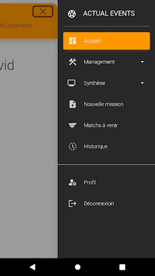 LMS Design - FCL Actual Events allows you to find the functionalities of your management website directly on an application.