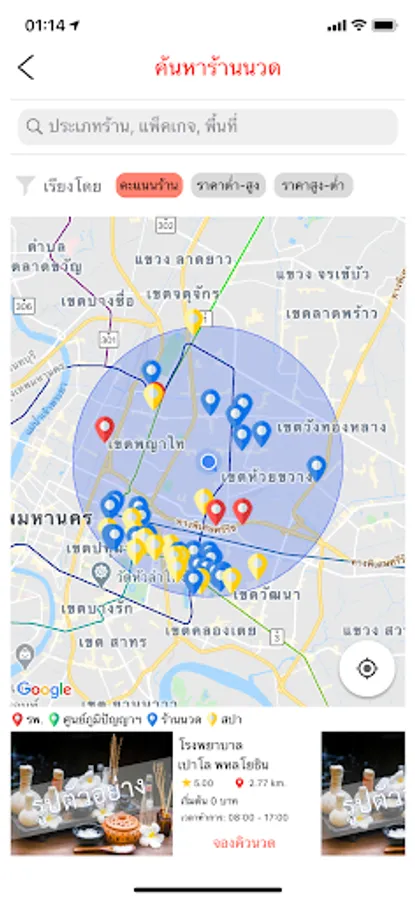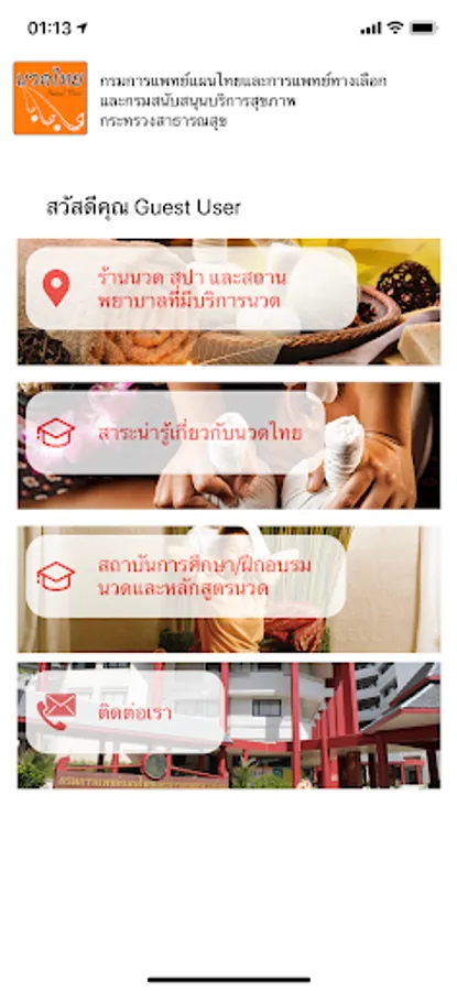 The app can search for health establishments that are certified by government agencies. Such as Thai massage shops, Thai spas, and hospitals that provide massage services for treatment.