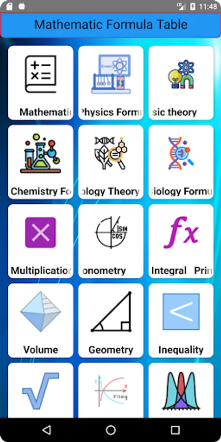 • Mathematic Formulas: Application supplies most of popular mathematic formulas using in schools, offices which help students, users review once they forget. User can review Mathematic handbook listing most math formulas in high school or trigonometry, Integral Primitive, Power Logarithm formulas….