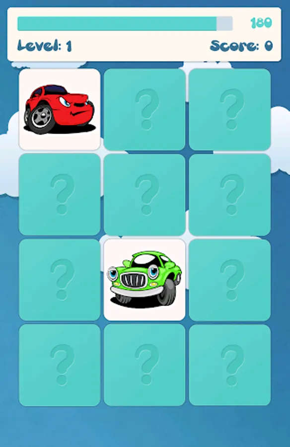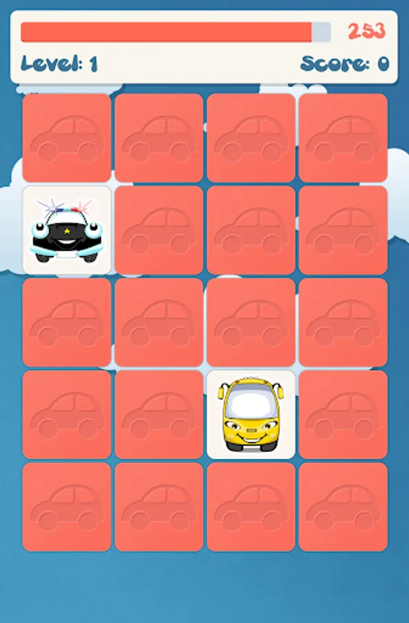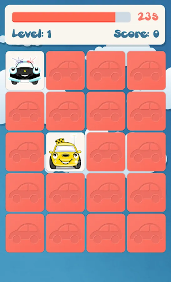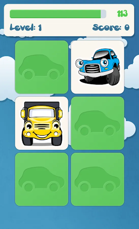 - For each level, player is required to tap the square buttons and need to memorize what is behind it in order to match its couple. Players are required to complete a level in minimum finger taps to match all cars.