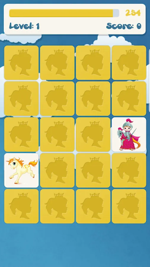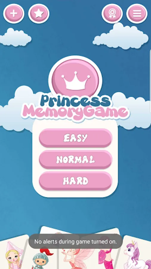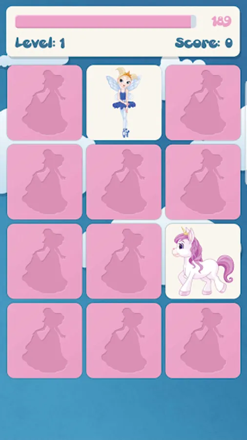 - princess matching game has 3 different difficulty (easy: 2x3; medium: 3x4; hard: 4x5)
