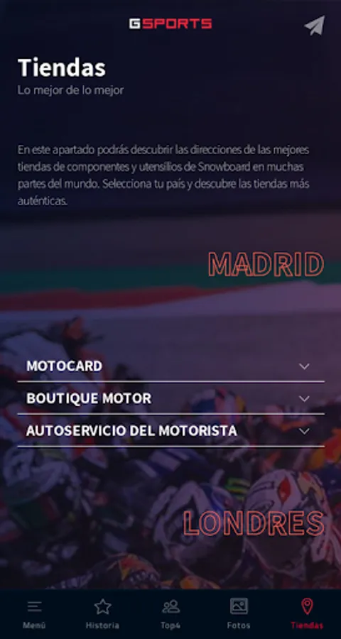 Motorcycling is an exciting sport. In this application we can find: