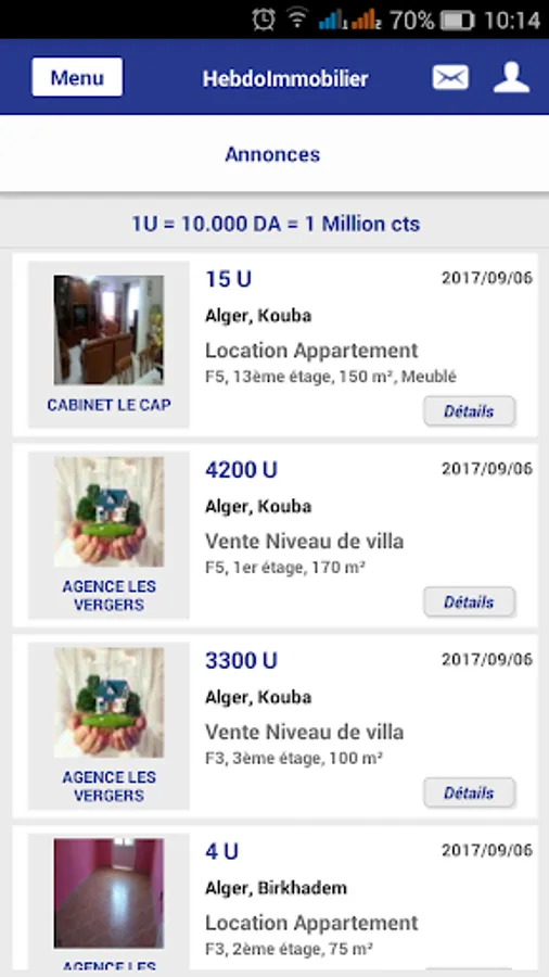 In 2017 we offer mobile property Weekly. An Arabic version and a French version.