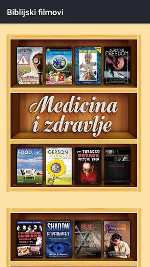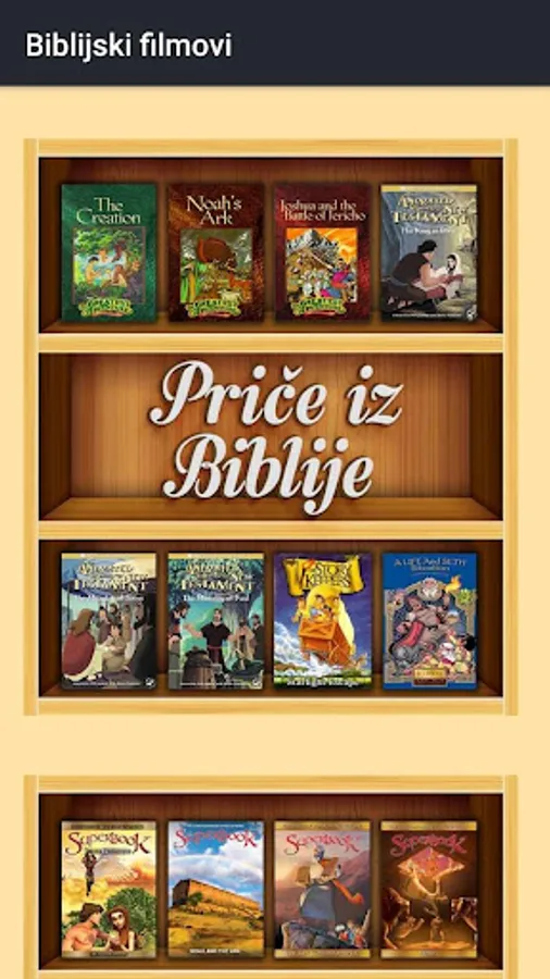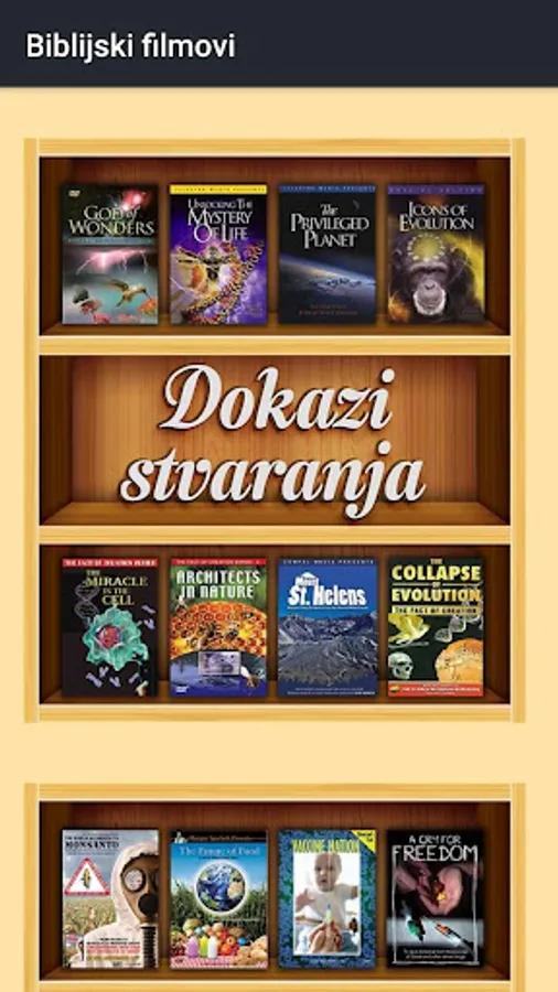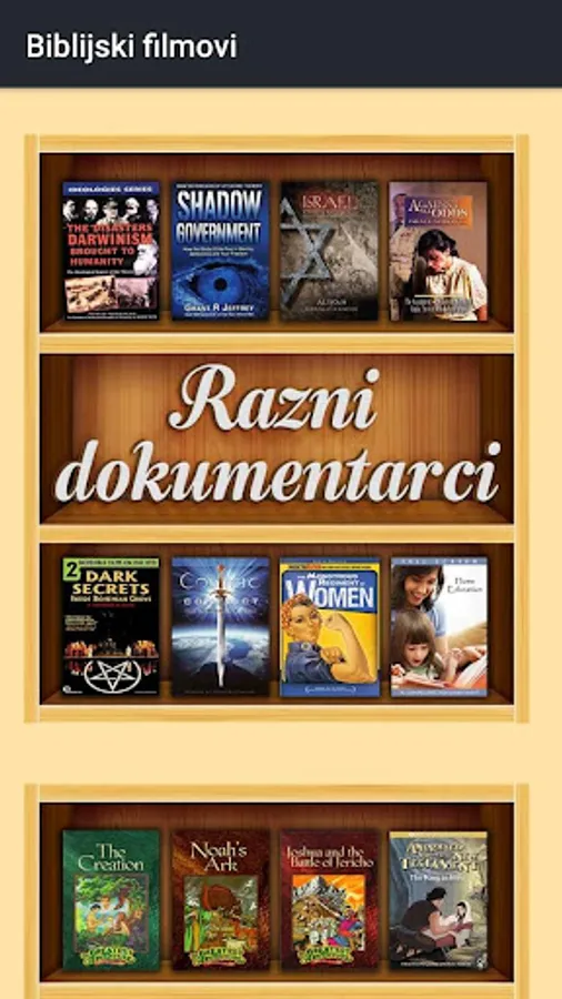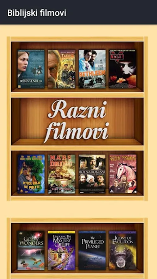 Aplikacija Biblijski filmovi kao i sajt je deo internet prezentacija Centra za prirodnjačke studije, i predstavlja najveću bazu igranih, dokumentarnih i crtanih filmova sa biblijskom i hrišćanskom tematikom na našem jeziku.