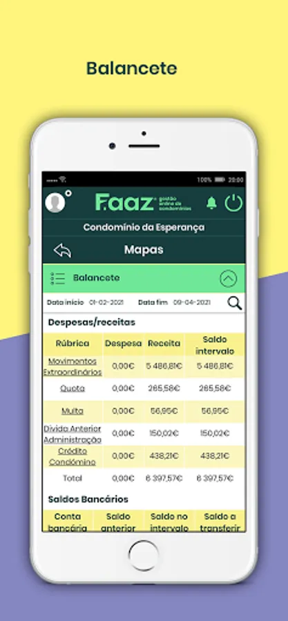 Totally free and with a simple and intuitive interface, with the FAAZ APP you have access to your condominium information whenever you need it.