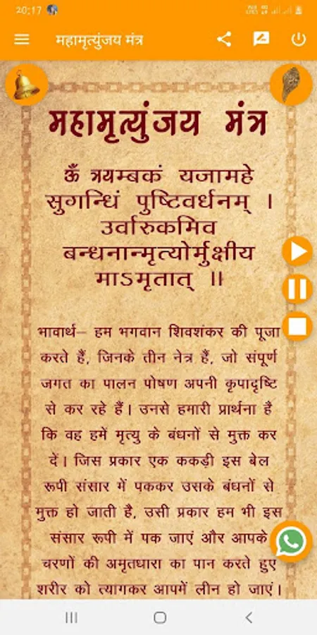 This mantra is addressed to Shiva for warding off untimely death. It is also chanted while smearing Vibhuti over various parts of the Body and utilised in Japa or Homa (havan) to get desired results. While its energy protects and guides the initiates a mantra re-links consciousness to its deeper and more abiding nature and repetition of the mantra constitutes Japa, the practice of which develops concentration that leads to a transformation of awareness. Whereas the Gayatri Mantra is meant for purification and spiritual guidance, the Mahamrityunjaya Mantra is meant for healing rejuvenation and nurturance.