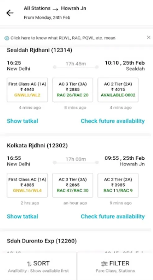 Fare Enquiry : Find fare for all the travel classes like first ac, second ac, third ac, sleeper, etc