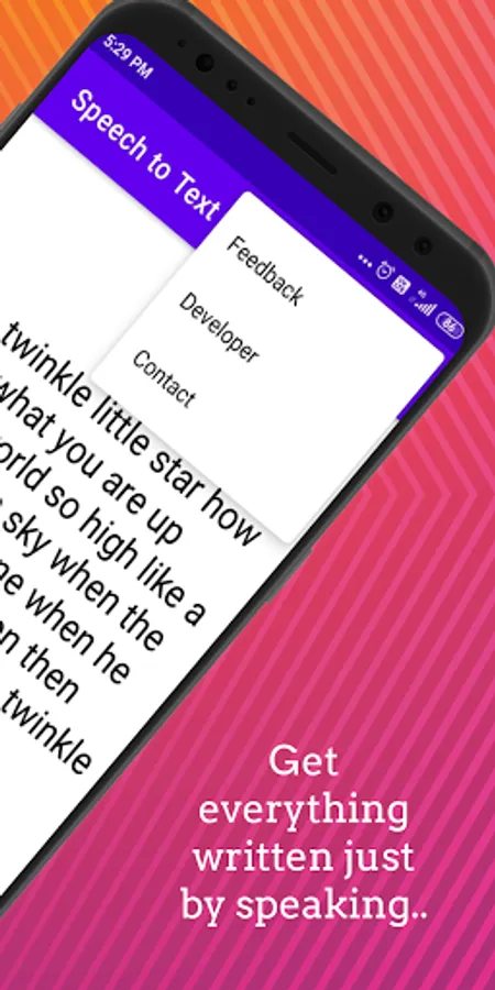 Speech to Text Application allows you to simply get the text whatever you speak in seconds. This application is developed for common people for their welfare purpose only. Also,