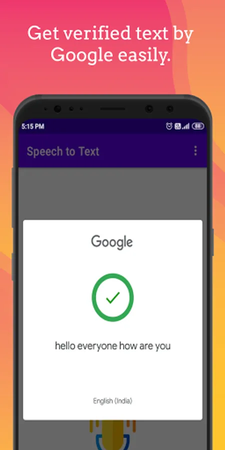 The speech can be given in any language according to your default phone languages and it can also be checked through Google recognition.