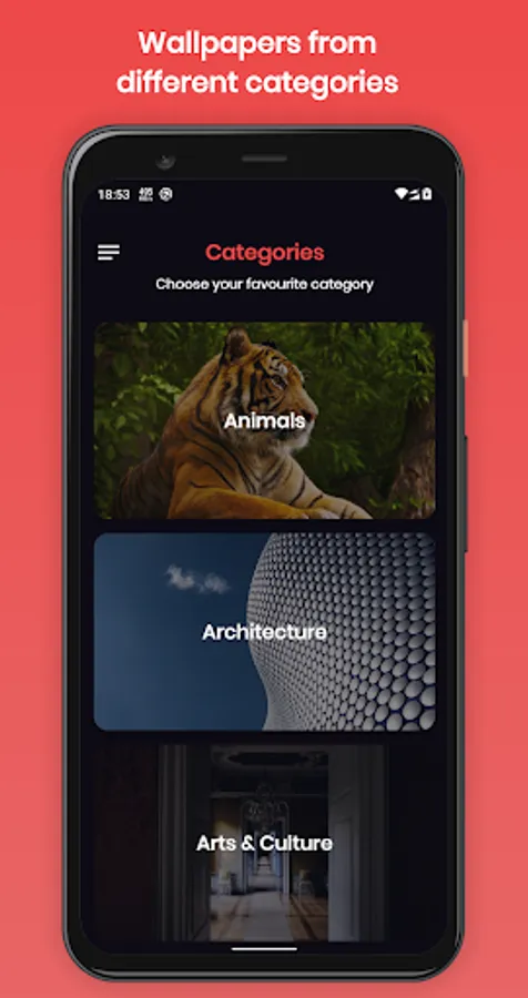 WALLIPI contains a number of categories for wallpapers & backgrounds which you can choose from according to your need and choice. Each category contains a number of Full HD images which you can use as your phone's wallpaper.