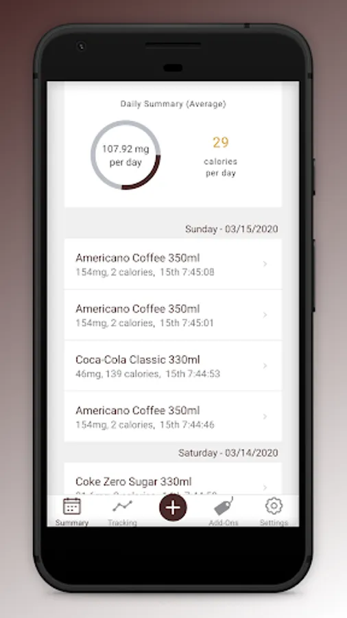 A caffeine tracker to understand how much caffeine is in your system and how much you consume on a daily basis. Simply record each time you consume a drink with caffeine, it will give you results of how much caffeine is within your body. This can be shown on a graph to see time the caffeine will wear off by.