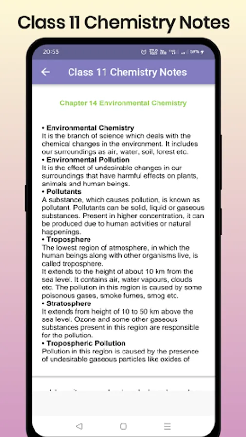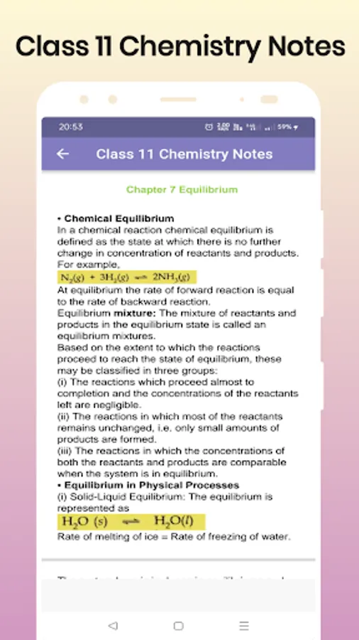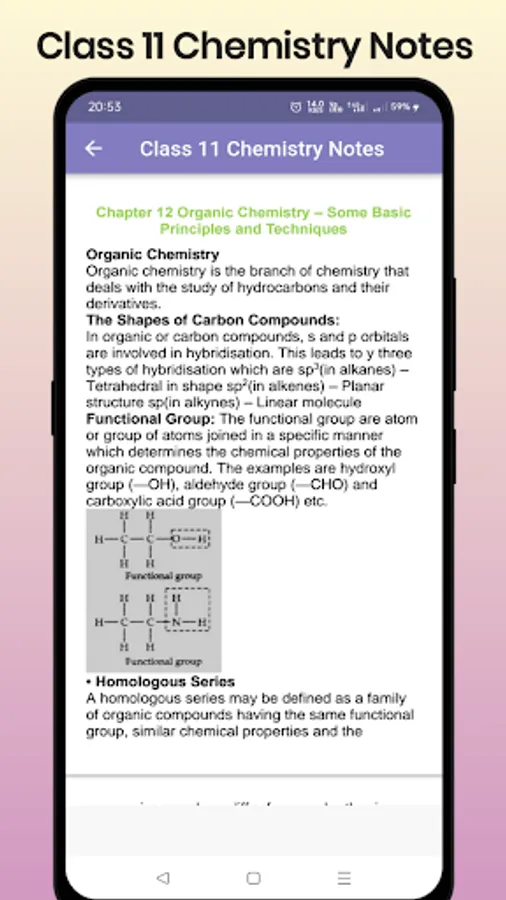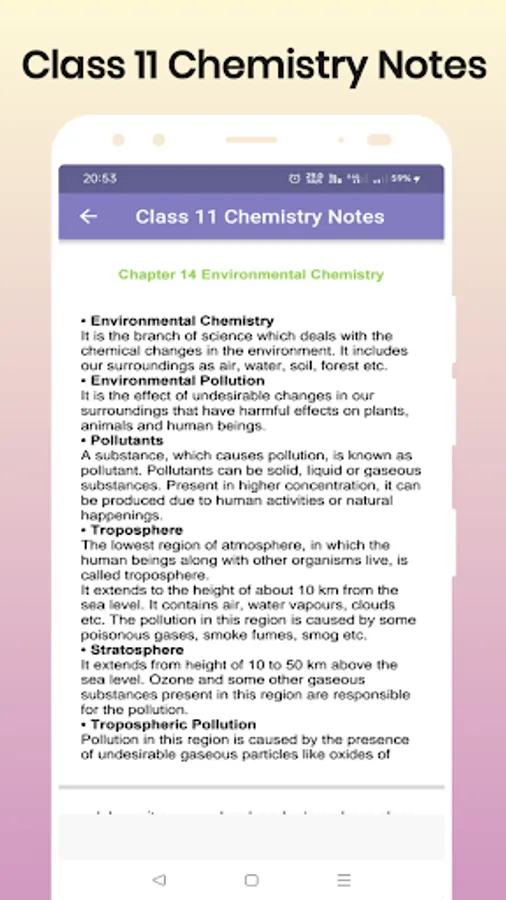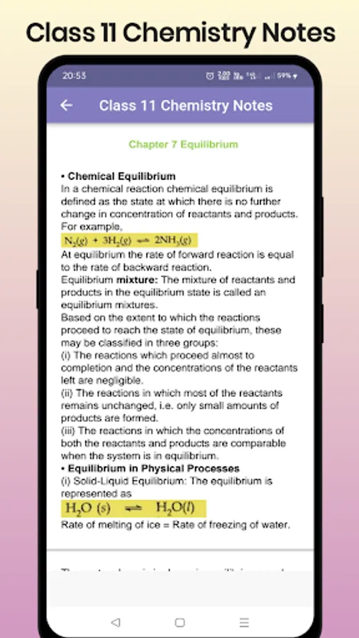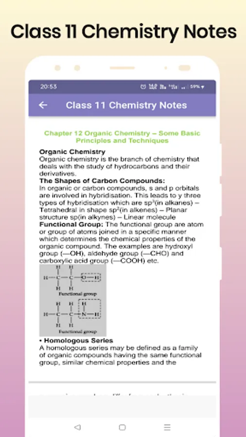This application contains class 11 Chemistry notes NCERT Book notes chapter wise with brief description point wise. This application is design for class 11th student each chapter contain detail notes. I think this application is must have application for class 11 chemistry notes for english medium student.