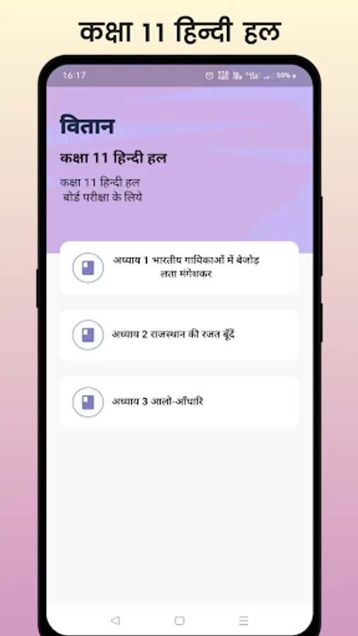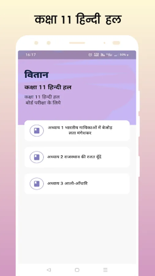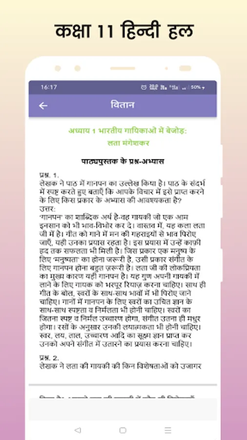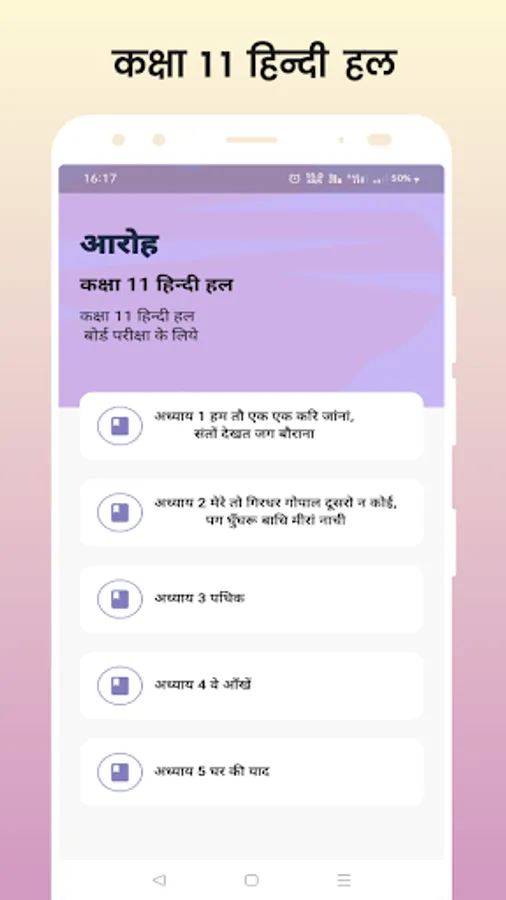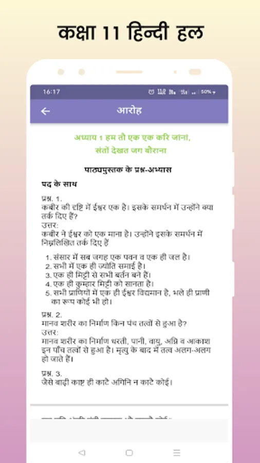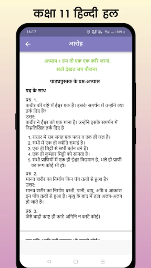This app is aggregate of class 11 hindi Aroh and Vitan solution in most systematically way. It will help in quick revision if you liked our app. Please rate us.